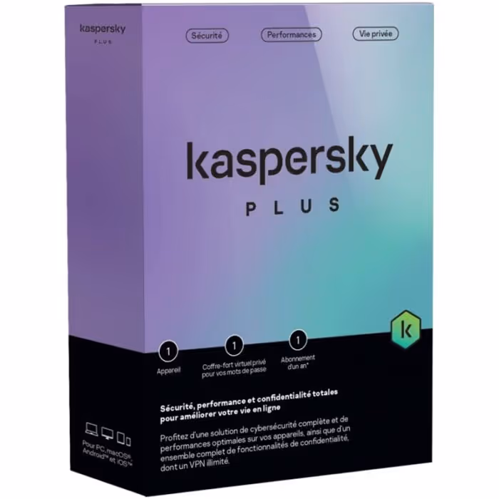 Kaspersky Plus 1 Dev est une solution de sécurité informatique complète et avancée, conçue pour protéger un appareil unique (PC, Mac, ou appareil mobile) contre une large gamme de menaces numériques. Ce logiciel antivirus offre une protection de haute qualité contre les virus, logiciels malveillants, ransomwares, et autres types d'attaques en ligne.