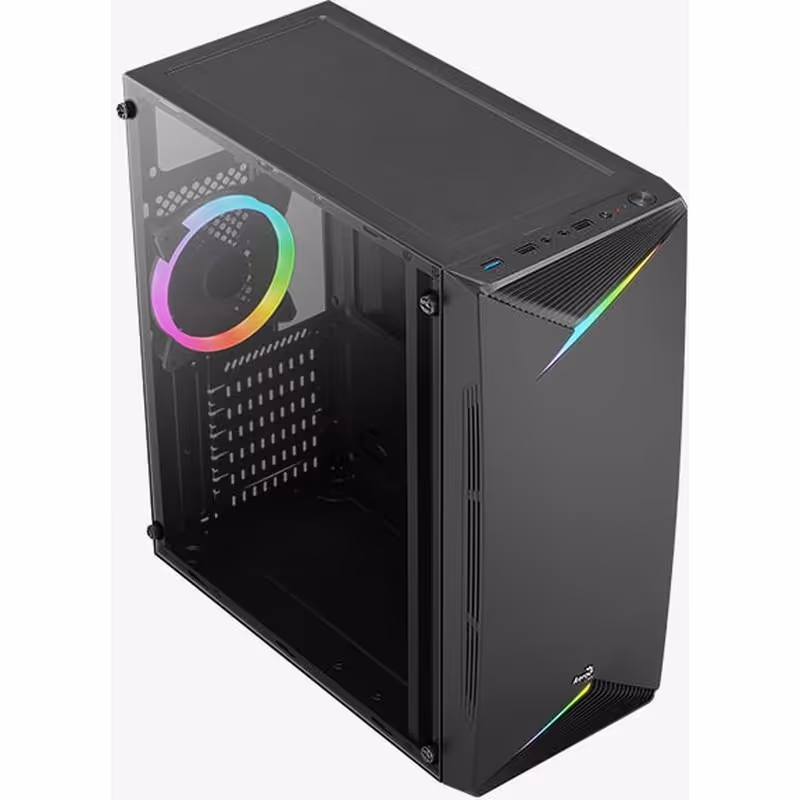 AeroCool TALON-G-BK-V1 est un boîtier PC au design moderne et dynamique, conçu spécialement pour les gamers et les utilisateurs cherchant une configuration performante avec un look attrayant. Ce boîtier se distingue par son panneau latéral en verre trempé, son éclairage RGB intégré et sa conception optimisée pour un refroidissement efficace. Il convient parfaitement aux utilisateurs qui souhaitent construire un PC puissant tout en mettant en valeur leurs composants avec une esthétique gaming.