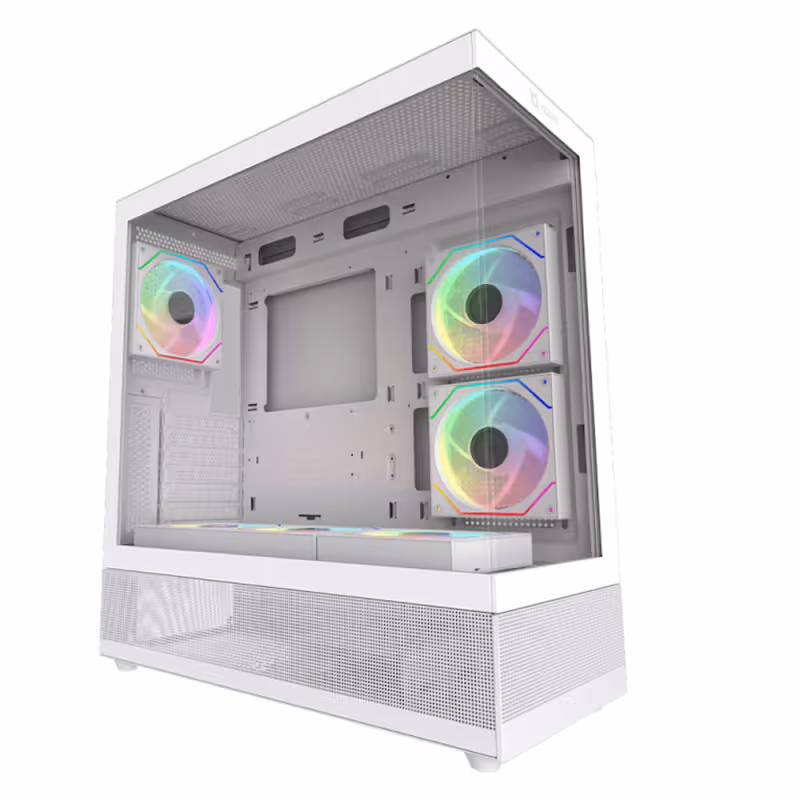 Le boîtier AQIRYS Antila ARGB - Blanc présente un design moderne et épuré, avec une finition blanche qui met en valeur la configuration à l'intérieur. Il est équipé de 3 ventilateurs ARGB de 120 mm préinstallés, offrant un éclairage dynamique et personnalisable qui peut être synchronisé avec les cartes mères compatibles. Son panneau latéral en verre trempé permet d’exposer l’intérieur de votre PC et de révéler vos composants ainsi que l’éclairage RGB, tout en garantissant une visibilité claire et esthétique.