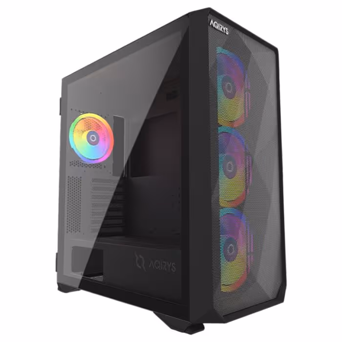Le boîtier AQIRYS Arcturus Pro 2.0 - Noir offre un design moderne et élégant avec des lignes épurées et une finition noire qui s'intègre parfaitement dans n'importe quelle configuration gaming. Le panneau latéral en verre trempé permet de visualiser les composants internes et de profiter pleinement des effets lumineux ARGB des ventilateurs. La façade avant ajourée offre à la fois un excellent flux d'air et une touche esthétique dynamique, en harmonie avec l'éclairage RGB.