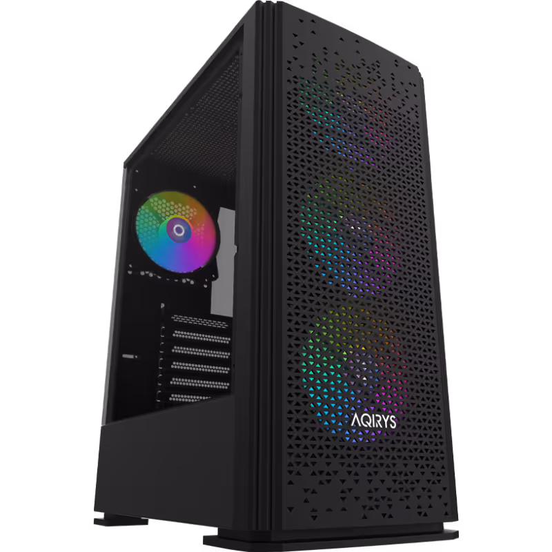 Le boîtier gamer AQIRYS Gacrux ARGB - Noir se distingue par son design élégant et moderne. Il est équipé d'un panneau latéral en verre trempé qui offre une excellente visibilité de vos composants internes et de l'éclairage RGB dynamique. Sa finition noire et ses lignes épurées s'intègrent parfaitement dans n'importe quelle configuration gaming, tout en mettant en valeur l'éclairage ARGB de manière impressionnante.