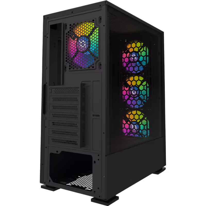 Les 3 ventilateurs ARGB de 120 mm préinstallés à l’avant du boîtier offrent non seulement une performance de refroidissement optimisée, mais aussi une personnalisation totale de l’éclairage. Ce boîtier peut être facilement synchronisé avec les technologies RGB des cartes mères comme ASUS Aura Sync, MSI Mystic Light et Gigabyte RGB Fusion, vous permettant de créer l’ambiance visuelle parfaite.