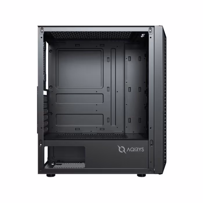 Le boîtier AQIRYS Mizar RGB - Noir combine un design moderne et élégant avec des lignes épurées et un panneau latéral en verre trempé. Ce dernier permet de mettre en valeur vos composants tout en offrant une excellente visibilité de l'éclairage RGB dynamique. Ce boîtier gaming arbore une finition noire qui s'intègre parfaitement dans n'importe quelle configuration, que ce soit pour un usage gaming ou de bureautique avancée. L’avant du boîtier est conçu pour maximiser l’entrée d’air et assurer une circulation optimale du flux d'air.