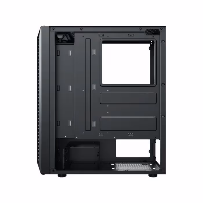 Le boîtier propose une gestion des câbles optimisée grâce à un espace dédié à l’arrière pour ranger et organiser les câbles. Cela garantit une installation propre et améliore la circulation de l'air, ce qui contribue à un meilleur refroidissement. Le compartiment pour l'alimentation est également conçu pour éviter tout encombrement inutile.
