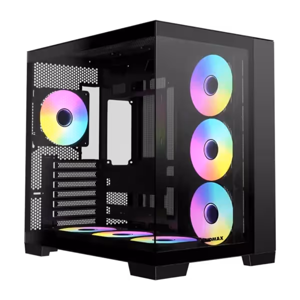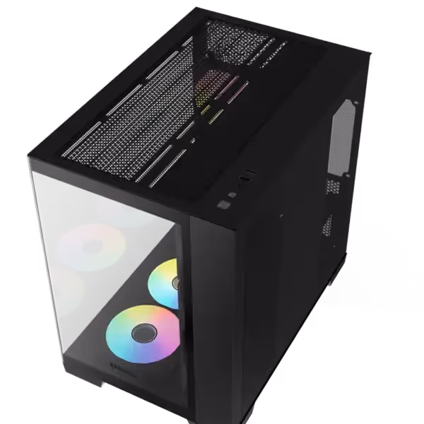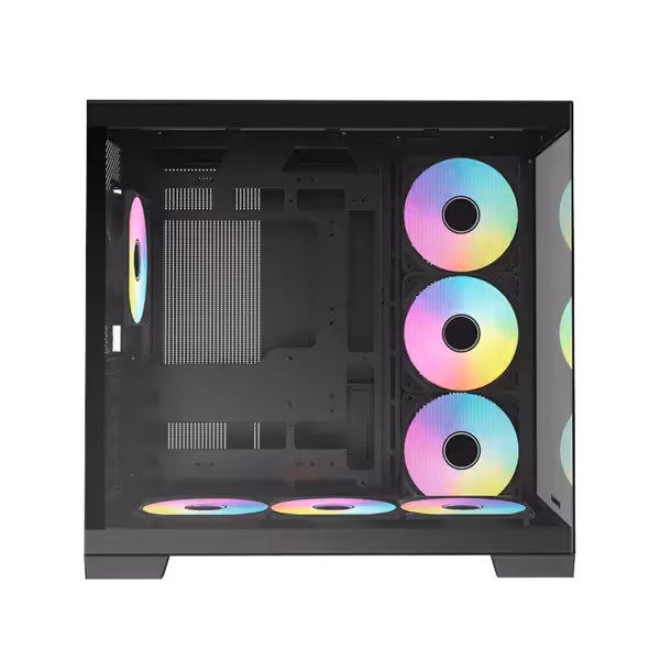 Le boîtier RAIDMAX Infinita i610 Noir (Réf : i610TBS) est un modèle haut de gamme conçu pour les passionnés de gaming et de performance, alliant design moderne dual-chamber frameless et panneaux en verre trempé pour une visibilité optimale des composants. Il est équipé de 7 ventilateurs RGB statiques (6 latéraux/bas et 1 arrière) assurant un refroidissement puissant, efficace et silencieux, tout en offrant un rendu visuel impressionnant.