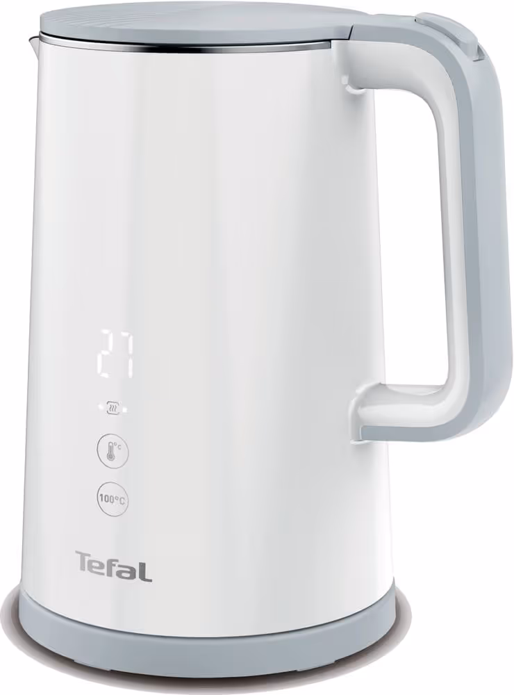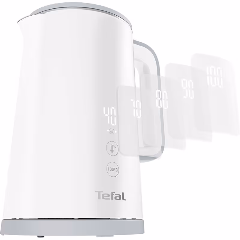 Bouilloire numérique TEFAL est un appareil moderne et polyvalent, doté d’une capacité de 1,5 litre et d’une puissance de 1500 à 1800 W pour une ébullition rapide et efficace. Elle propose 5 réglages de température (40°C, 70°C, 80°C, 90°C, 100°C) avec un affichage en temps réel, idéal pour adapter la chaleur à chaque boisson. Sa conception SAFE TOUCH garantit une paroi froide au toucher, tandis que la fonction maintien au chaud assure une température optimale plus longtemps. Équipée d’un filtre anticalcaire amovible pour un nettoyage facile, d’un indicateur de niveau d’eau et d’une base pivotante à 360° avec range-cordon, elle offre un confort d’utilisation optimal. Son design élégant en blanc et sa garantie d’un an en font un choix pratique et fiable.
