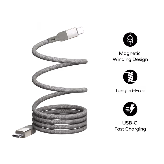 Le Câble Momax Mag Link arbore une couleur gris élégante et un design moderne qui s'intègre parfaitement à tout environnement. Que ce soit pour un usage à domicile, au bureau ou en déplacement, il a un aspect minimaliste et élégant, tout en restant pratique et fonctionnel.