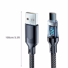 Câble de Chargeur Gevo Type-C LCD Data 100W - Noir 1