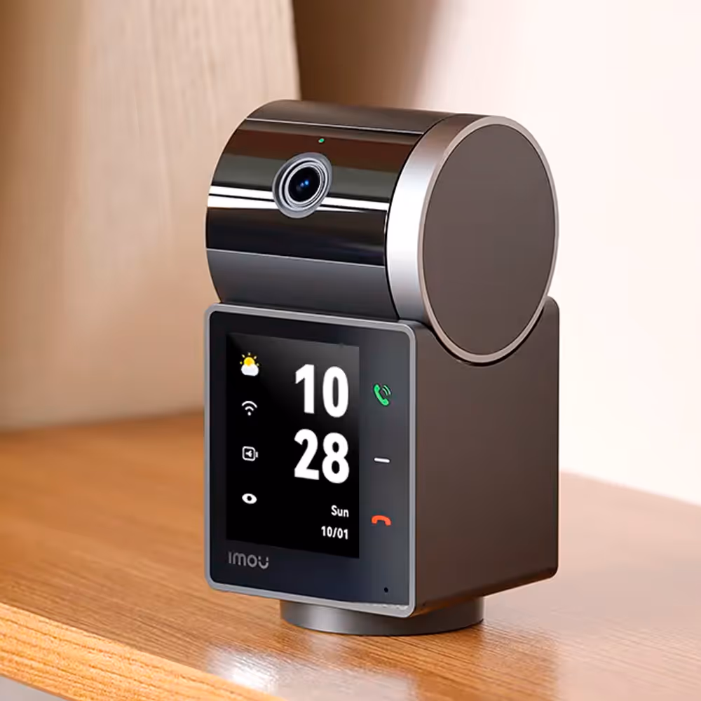 Caméra IP motorisée intérieure avec Wi-Fi 2,4 GHz et résolution 5 MP (2880x1620). Objectif 3,6 mm, vision nocturne IR jusqu’à 20 m, compression H.265. Mouvement vertical et horizontal contrôlable à distance avec autotracking. Détection intelligente de personnes, sons et animaux domestiques (IMOU Sense). Audio bidirectionnel, appel vidéo, sirène intégrée et enregistrement sur carte SD ou Cloud (Imou Protect). Écran 2,4 " pour l’heure et la météo. Compatible NVR Imou/Dahua et Onvif. Contrôle via l’application Imou Life et logiciel PC.