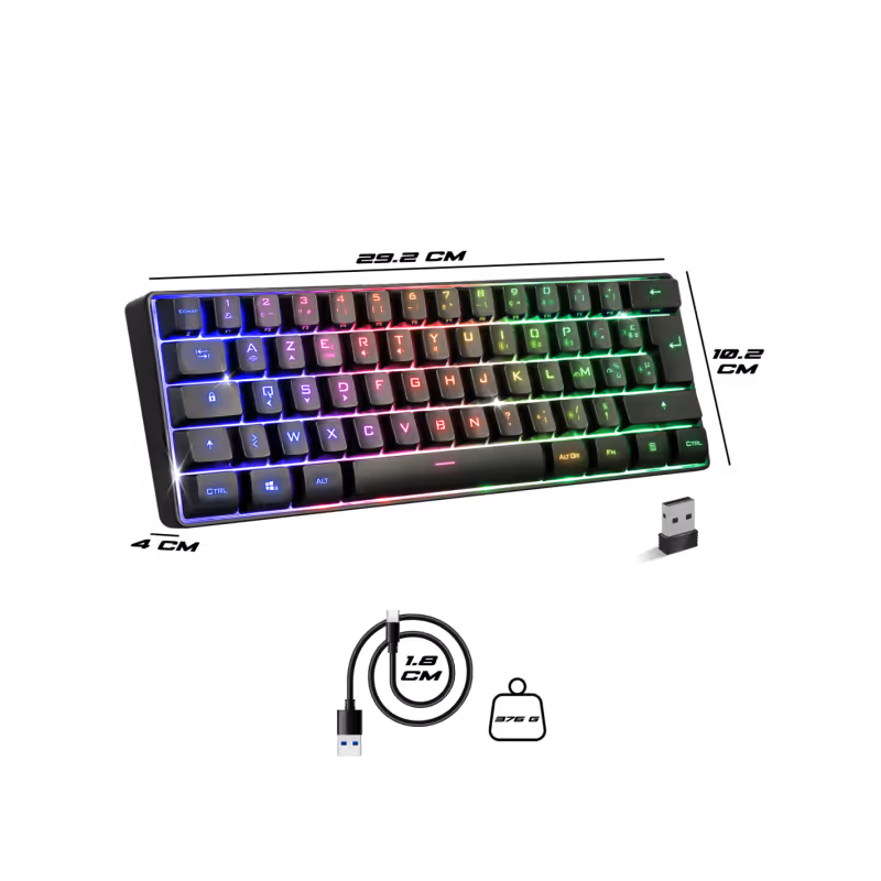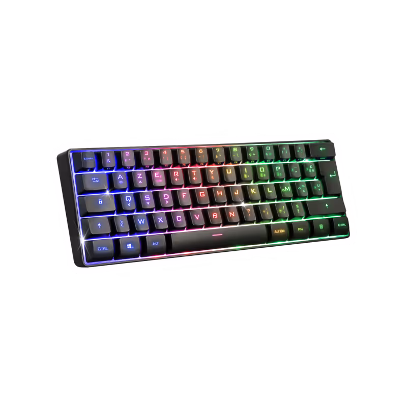 Design compact TKL 60% : Ce clavier est conçu en format TKL (Tenkeyless), c’est-à-dire sans pavé numérique, pour un design ultra-compact. Il dispose de 62 touches, parfait pour les joueurs qui privilégient l’agilité et l'espace sur leur bureau.