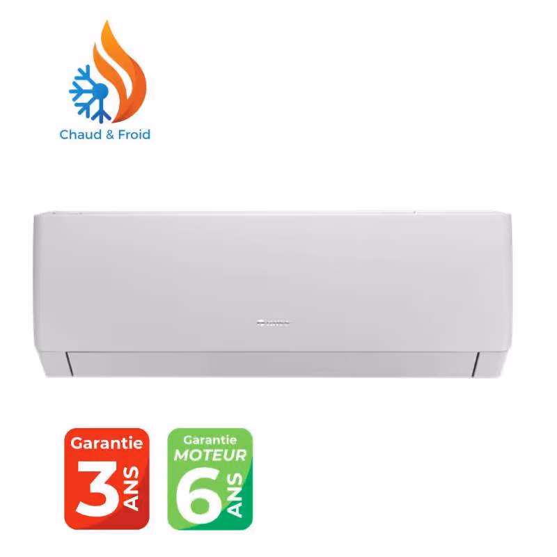 Conçu pour être à la fois puissant, efficace et tropicalisé, il assure un confort durable et une performance stable. Avec des dimensions de l’unité intérieure de 1075×333×246 mm et de l’unité extérieure de 958×660×402 mm, ainsi qu’une couleur blanche élégante, il s’intègre facilement dans tout type d’intérieur. Ce climatiseur est livré avec une garantie de 3 ans sur l’appareil et 6 ans sur le compresseur, assurant fiabilité, durabilité et tranquillité d’esprit pour les utilisateurs.