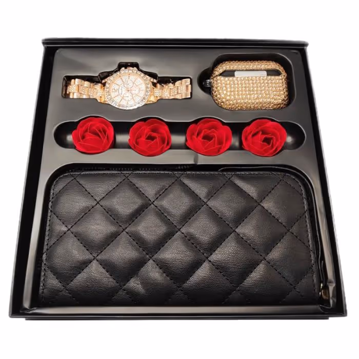 Coffret complet : Le coffret réunit trois éléments essentiels – montre, portefeuille et AirPods – pour une expérience luxueuse et pratique.