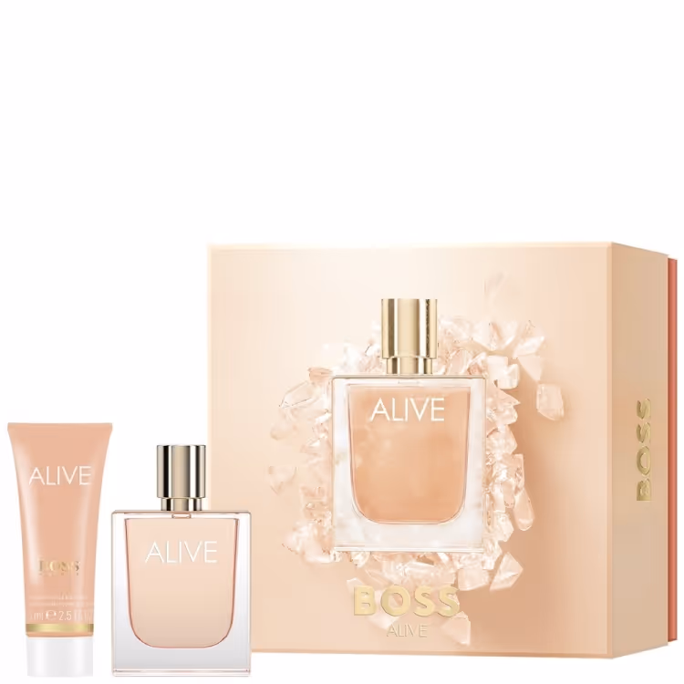 Coffret Hugo Boss Alive Femme : Eau de Parfum 50 ml + Lait Corps 75 ml. Une fragrance lumineuse et féminine, parfaite pour offrir. Disponible au meilleur prix en Tunisie.