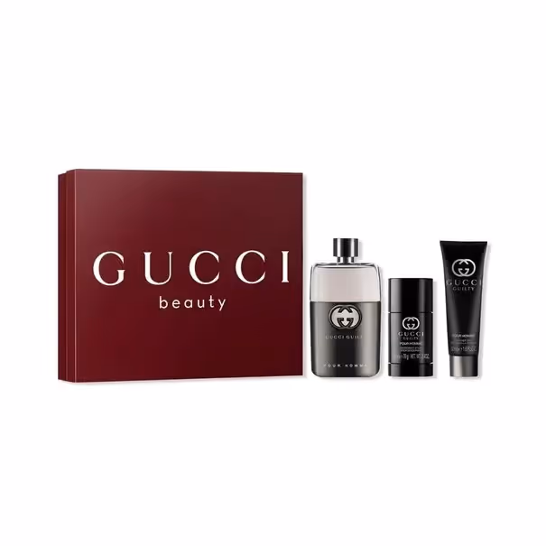 Le coffret Gucci Guilty Pour Homme réunit trois essentiels parfumés autour de la fragrance iconique de la maison Gucci. Un parfum moderne et sensuel mêlant notes d’agrumes, de lavande et de patchouli, un gel douche 50 ml pour une fraîcheur quotidienne et un déodorant stick 75 ml assurant confort et élégance tout au long de la journée.