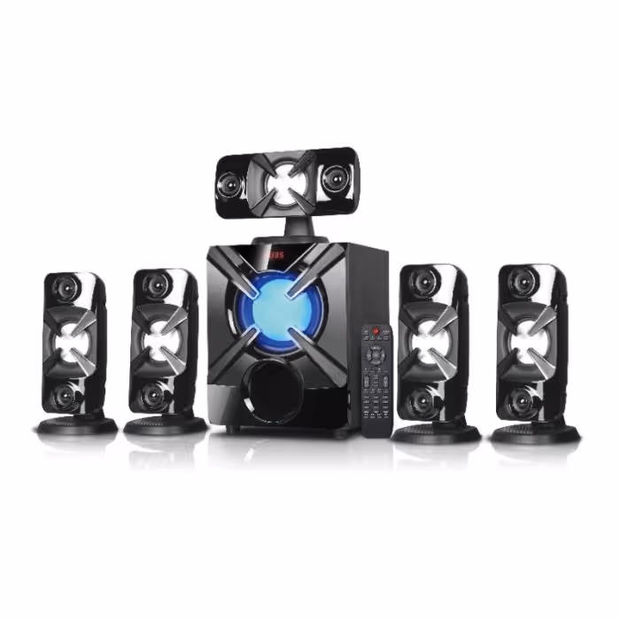 Haut parleur GOLD SOUND GS 5602 - Connectivite: Sans Fil (Bluetooth) - InterfacePuissance: 20 Watts + 10 x 5 Watts - Taille de haut parleur: 25"+ 5 x 3" - Réponse en fréquence: 40 Hz-20 kHz - Rapport signal/bruit: >=75 db - Séparation: >= 50 dB - Alimentation électrique: 220V / 60Mhz - Avec Télécommande - Couleur: Noir - Garantie: 1 an.