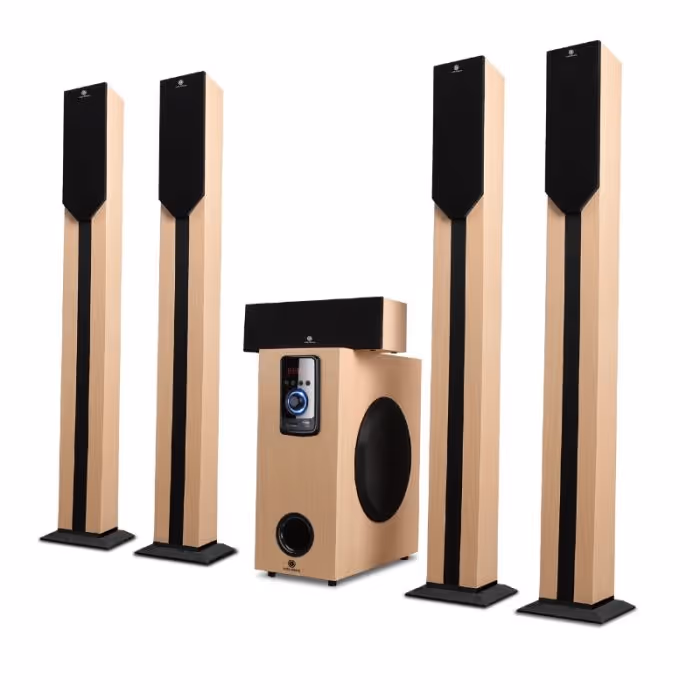 Haut parleur GOLD SOUND GS 6907 - Connectivite: Sans Fil (Bluetooth) - InterfacePuissance: 35 W + 5 x 12 W - Taille de haut parleur: 8"+ 5 x 3" +1"*5 - Réponse en fréquence: 40 Hz-20 kHz - Rapport signal/bruit: >=75 db - Séparation: >= 50 dB - Alimentation électrique: 220V / 60Mhz - Avec Télécommande - Couleur: Bois clair - Garantie: 1 an