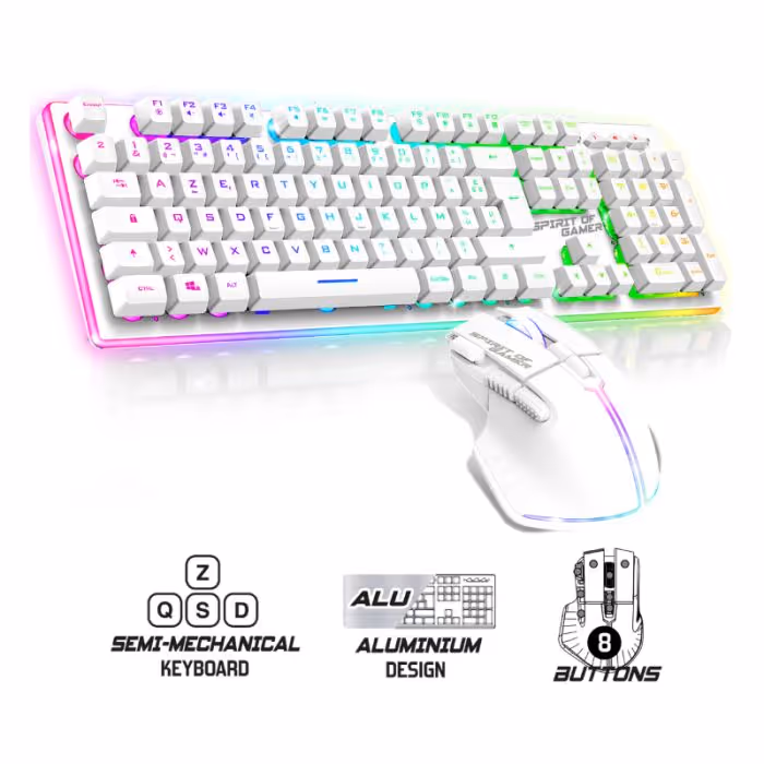 L’ensemble Spirit Of Gamer Ultimate 600 Filaire allie précision, vitesse et design RGB immersif, idéal pour les gamers passionnés souhaitant un équipement efficace et stylé, prêt à affronter toutes les batailles.