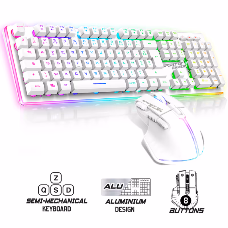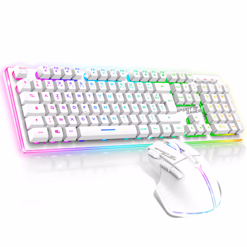 L'ensemble Spirit Of Gamer Ultimate 600 en blanc est un kit gaming sans fil conçu pour offrir une performance optimale et un confort exceptionnel, tout en mettant en avant un design moderne avec un rétro-éclairage RGB dynamique.