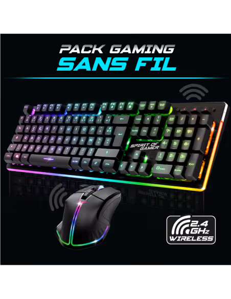 L'ensemble Spirit Of Gamer Ultimate 600 en noir est un kit gaming sans fil conçu pour offrir une performance optimale et un confort exceptionnel, tout en mettant en avant un design moderne avec un rétro-éclairage RGB dynamique.