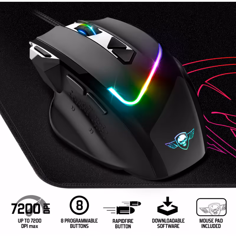 L'Ensemble Souris & Tapis Gaming Spirit Of Gamer Pro-M3 RGB est conçu pour offrir aux gamers une expérience de jeu fluide, précise et personnalisée. Ce pack combine une souris filaire performante et un tapis de souris haut de gamme pour un confort et une réactivité optimale pendant vos sessions de jeu.