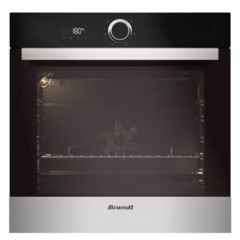 Four Encastrable Électrique BRANDT allie performance et innovation pour une cuisson précise et rapide. Avec un volume de 73 litres et une largeur de 60 cm, il offre un espace généreux pour toutes vos préparations. Classé A en efficacité énergétique, il propose 6 fonctions de cuisson, dont chaleur tournante, gril ventilé et gril fort, optimisées par la technologie Quattro Pulse et l’assistant intelligent Smart Assist pour des résultats homogènes. Son temps de préchauffage rapide de 7 minutes permet de gagner du temps, et ses 6 niveaux de gradins offrent une grande flexibilité pour cuire plusieurs plats simultanément. Sécurisé grâce au verrouillage du bandeau, il dispose d’un bandeau en verre, d’une porte en inox et verre, et d’une lampe incandescente pour un contrôle visuel facile. Compact et élégant avec des dimensions de 596 x 592 x 544 mm, un poids de 30,6 kg, une finition noire, et une garantie de 2 ans, ce four est idéal pour moderniser votre cuisine tout en offrant une cuisson performante et pratique.