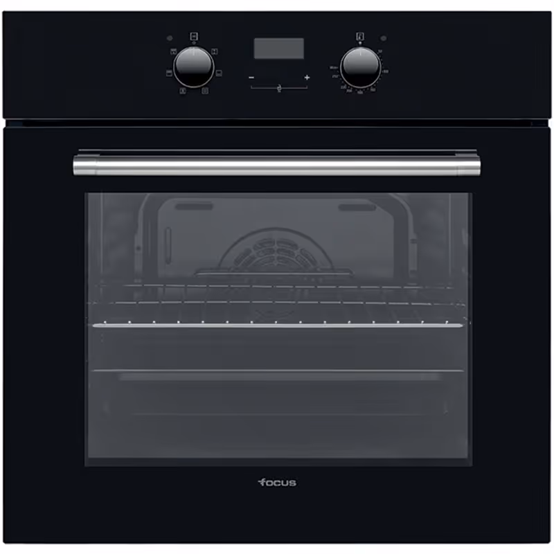 Four encastrable électrique FOCUS F521B allie performance et modernité avec ses 56 litres de capacité et sa largeur de 60 cm. Équipé de 7 programmes et de la chaleur tournante, il garantit des cuissons homogènes pour toutes vos recettes. Sa minuterie électronique, ses boutons associés à un afficheur et sa porte à 2 vitres froides offrent confort et sécurité d’utilisation. Avec un design élégant en noir, ce four dispose d’un plateau et d’une grille inclus, de dimensions 60 x 60 x 53,5 cm, d’une classe énergétique A+ et est livré avec une garantie de 2 ans.