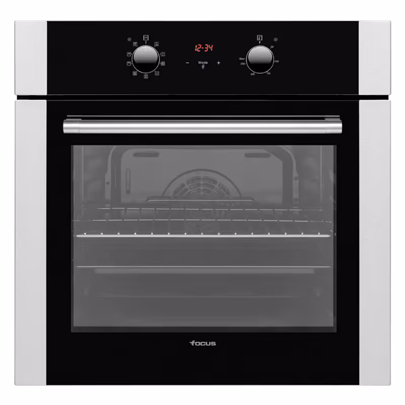 Four encastrable électrique FOCUS F522X allie performance et modernité avec ses 65 litres de capacité et sa largeur de 60 cm. Doté de 9 programmes et de la chaleur tournante, il garantit des cuissons homogènes et précises. Ses boutons associés à un afficheur et sa minuterie électronique offrent un contrôle facile, tandis que sa fonction autonettoyante catalyse simplifie l’entretien. Avec une porte froide pour plus de sécurité et un design élégant en inox, ce four compact (60 x 60 x 54 cm) est performant, économe (classe A+) et bénéficie d’une garantie de 2 ans.