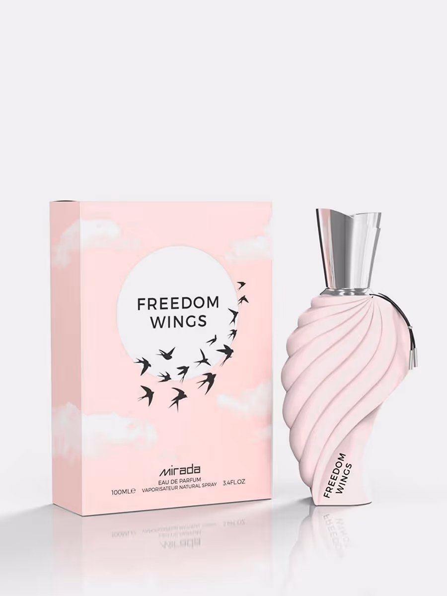 Un parfum élégant et inspirant, conçu pour la femme qui avance avec grâce et détermination. Freedom Wings s’ouvre sur un souffle fruité de litchi, fraise, poire et bergamote, puis dévoile un cœur intense mêlant rose turque, oud et encens. Son fond chaleureux de vanille, fève tonka, ambre et bois précieux laisse un sillage profond, confiant et irrésistible.