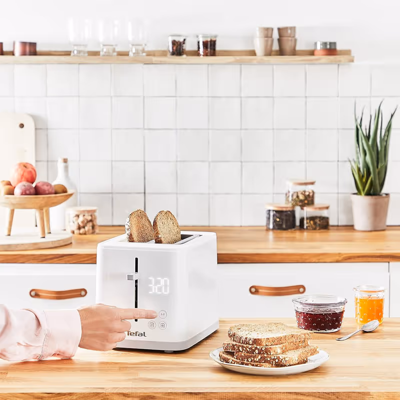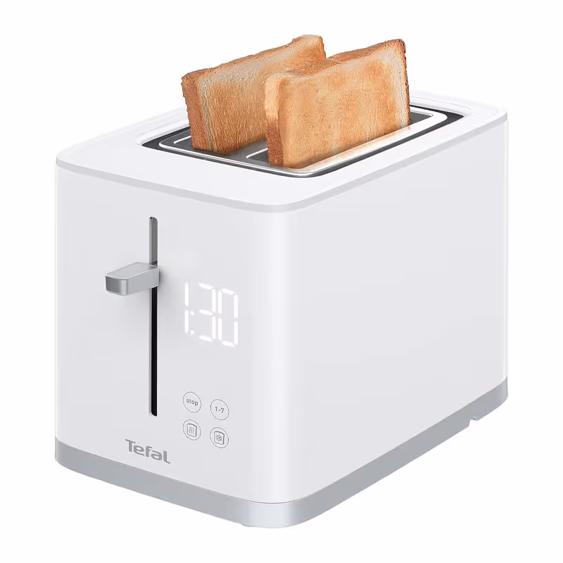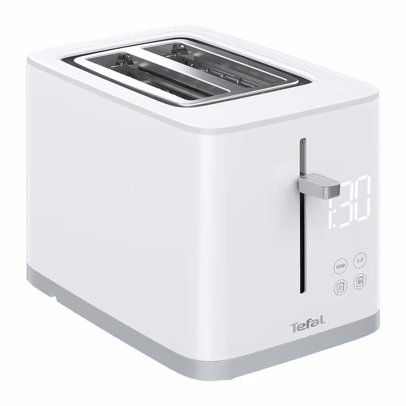 Grill pain TEFAL est un appareil pratique et moderne, équipé de 2 fentes pour griller vos tranches rapidement et efficacement. Grâce à ses fonctions de réchauffage et décongélation, il permet de griller du pain congelé ou de réchauffer du pain déjà grillé en seulement 30 secondes. Son écran numérique avec compte à rebours et ses 4 fonctions dédiées avec boutons tactiles offrent un contrôle précis et intuitif. Doté d’un voyant lumineux et d’un arrêt automatique après 2 minutes, il garantit une utilisation sécurisée. Le bouton de surélévation facilite le retrait des tranches, tandis que le tiroir ramasse-miettes amovible et le range cordon assurent un entretien simple et un rangement pratique. Avec son design élégant en blanc et sa garantie d’un an, il s’intègre parfaitement dans votre cuisine.