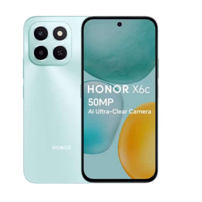 Écran 6,61" LCD TFT (1604 x 720 pixels) 120Hz - Processeur: MediaTek Helio G81 Ultra Octa-core - Système d’exploitation: MagicOS 9.0, Android 15 - Mémoire RAM: 6 Go extensible jusqu'à 12 Go -Capacité de stockage: 128 Go - Appareil photo arrière: IA 50 MP (F1.8) + objectif auxiliaire - Appareil photo avant: 5MP (F2.2) - Capacité de batterie: 5300 mAh - SuperCharge HONOR 35 W - Connectivité: 4G Wi-Fi, Bluetooth 5.1 - double SIM - Résistance à l'eau et à la poussière: IP64 - Couleur : Cyan - Garantie : 1 an