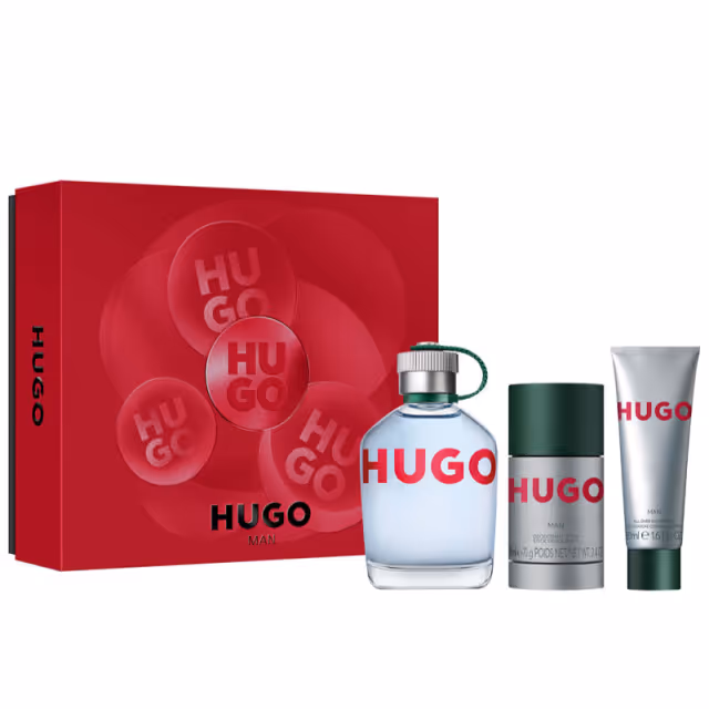 Offrez l’intensité des fêtes avec le coffret HUGO Man. Ce set élégant, présenté dans un coffret rouge embossé du logo HUGO, comprend l’Eau de Toilette, un déodorant stick et un gel douche parfumé.