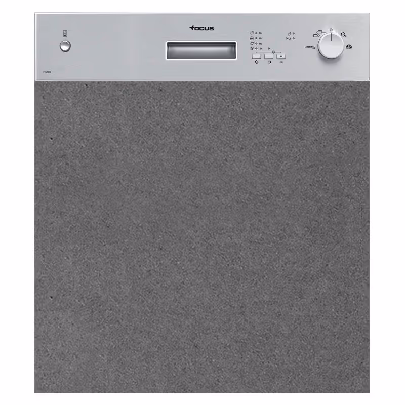 Lave-Vaisselle Focus F500X – 12 couverts, Inox - Lave-vaisselle semi-encastrable compact et performant, idéal pour les cuisines modernes. Il accueille jusqu’à 12 couverts et propose 4 programmes et 4 températures pour un lavage adapté à chaque vaisselle. Économique et silencieux avec une consommation de 12 L et un niveau sonore de 57 dB(A). Équipé de fonctions pratiques comme le départ différé (3-6-9-12 h), le verrouillage enfant et la visualisation du déroulement du programme. Classe énergétique A++, réglable facilement grâce à ses pieds. Dimensions : 82 x 60 x 57 cm. Garantie 2 ans.