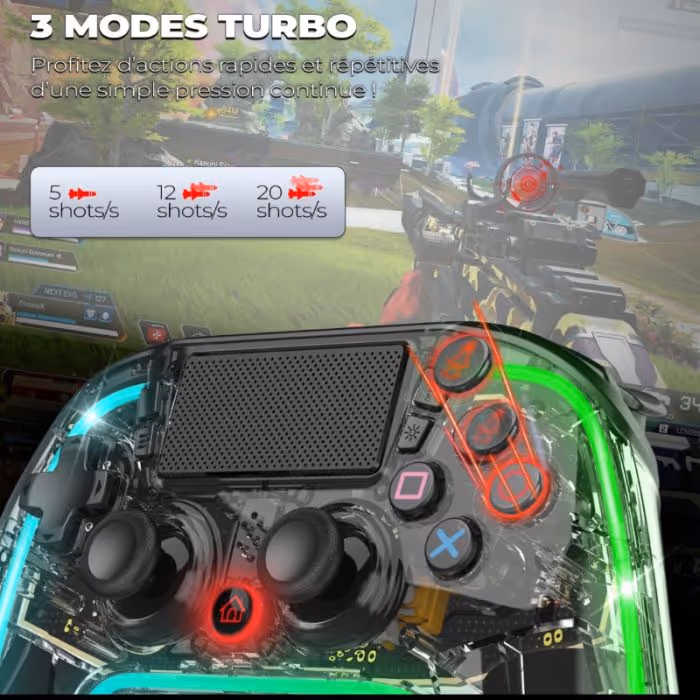 Design : Manette transparente, ajoutant une touche esthétique unique à votre expérience de jeu