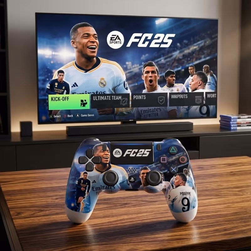 Référence : M-PS4-FC25 manette PS4 DUALSHOCK 4 FC25 Edition offre une expérience de jeu immersive grâce à sa batterie lithium-ion rechargeable haute capacité et sa connectivité Bluetooth sans fil stable ou via USB. Compatible avec PlayStation 4 (Fat, Slim, Pro) ainsi qu’avec PC, elle intègre un pavé tactile interactif, un haut-parleur intégré et une double vibration pour des sensations réalistes. Son design édition spéciale FC25 avec Kylian Mbappé apporte une touche unique, le tout couvert par une garantie de 3 mois.