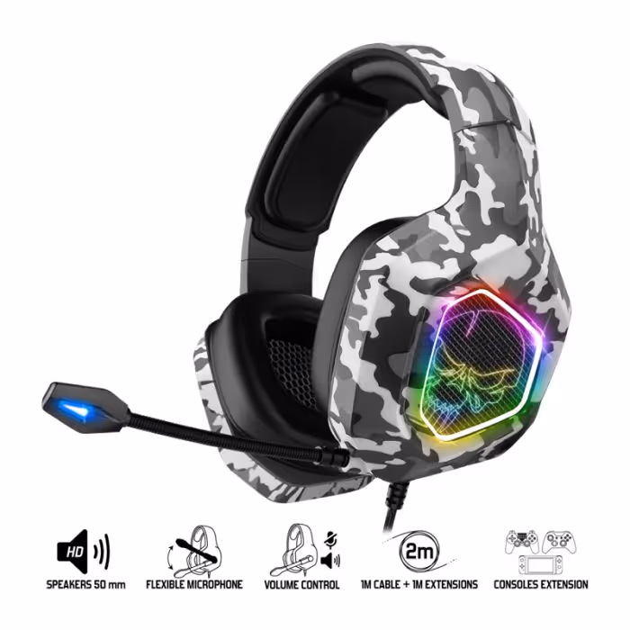 Le Micro Casque Gaming Filaire Spirit Of Gamer Elite H50 Edition RGB - Militaire est conçu pour les joueurs à la recherche de performances sonores exceptionnelles et d'un confort optimal lors de leurs sessions de gaming. Ce casque combine une qualité sonore de haute précision, un design moderne avec rétro-éclairage RGB et une construction durable pour offrir une expérience immersive et agréable, quel que soit le jeu.