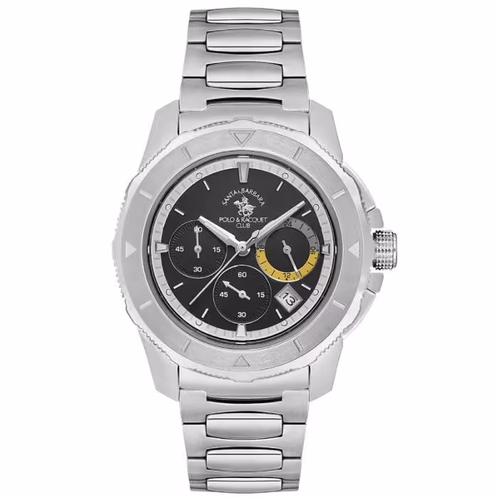 La Montre Homme Polo Santa Barbara SB-1-10561-1 - Silver & noir est idéale pour l'homme qui cherche à affirmer son style avec un accessoire de haute qualité, offrant un mélange parfait de simplicité et de sophistication. Que vous choisissiez de la porter au quotidien ou lors d’événements spéciaux, cette montre apportera une touche de raffinement et de classe à toutes vos tenues.