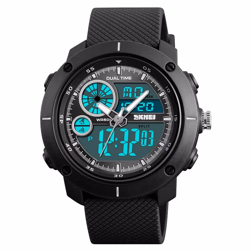La SKMEI 1524 combine technologie numérique et design sportif, offrant une montre résistante, lumineuse et fonctionnelle pour les hommes actifs et modernes.