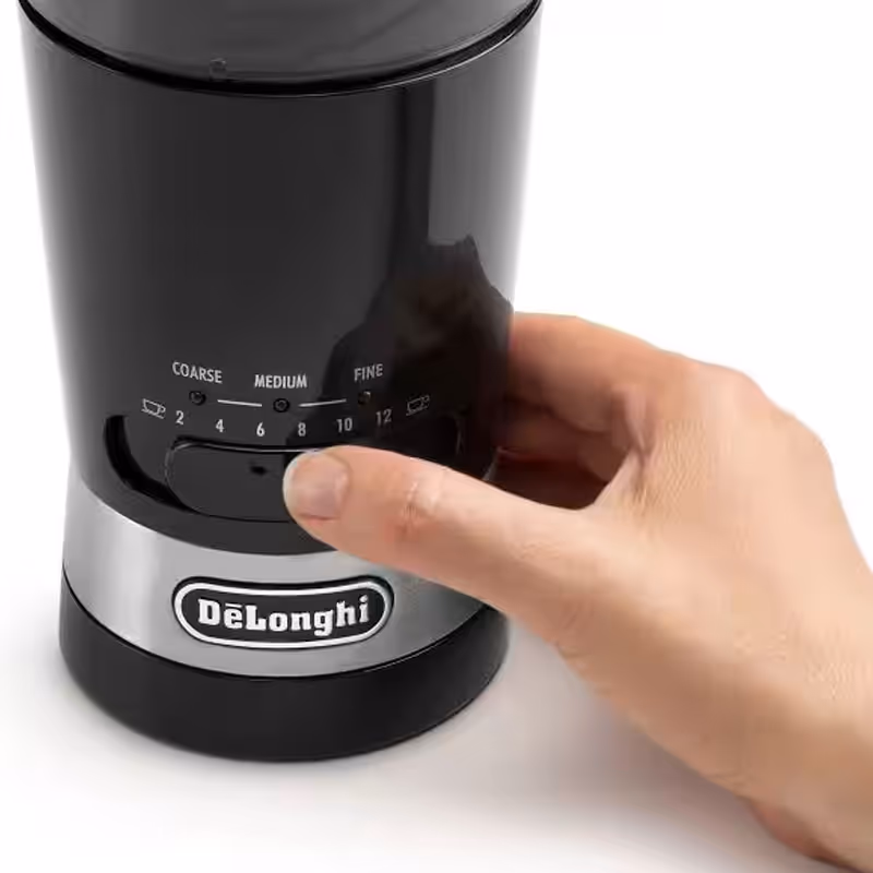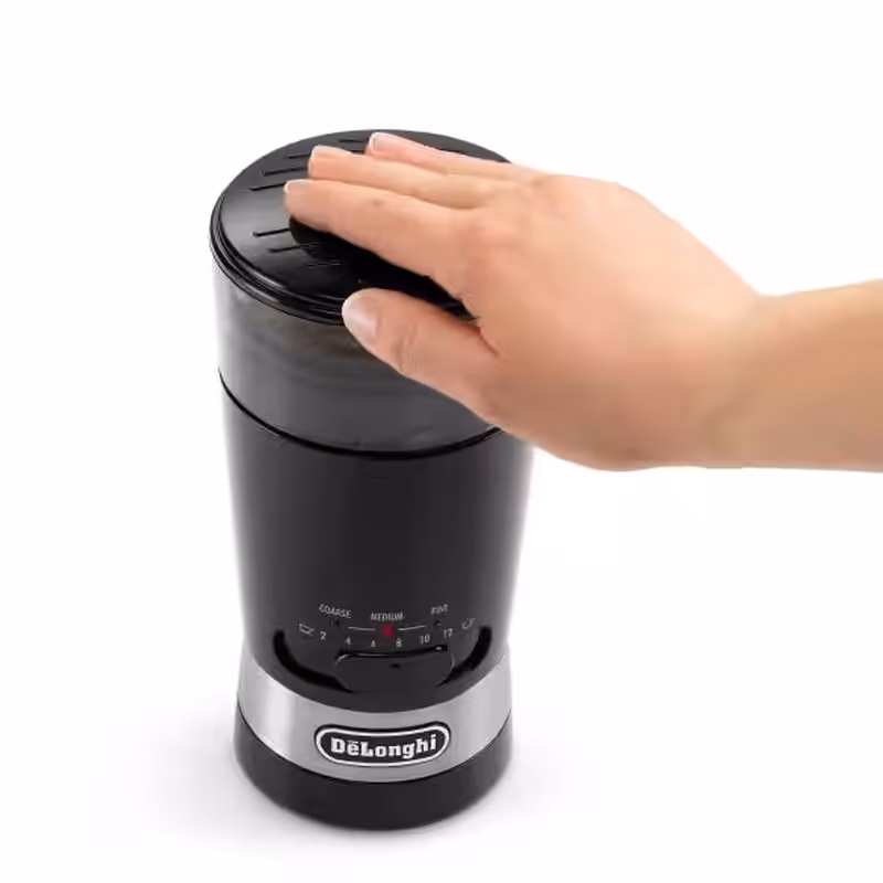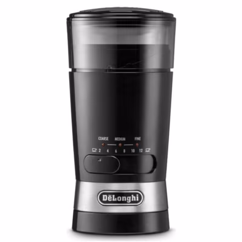 Moulin à café DELONGHI allie performance et praticité pour des grains fraîchement moulus à la maison. Avec une puissance de 170 Watts et une capacité de moulin de 90 g, il propose 3 niveaux de broyage — fin, moyen ou épais — pour s’adapter à toutes vos préparations. Le sélecteur de tasses permet de moudre de 1 à 12 tasses, garantissant toujours le résultat optimal. Équipé de lames en acier inoxydable, d’un bouton marche/arrêt, d’un range-cordon avec enrouleur, d’une ergonomie facilitant la prise en main, et de pieds antidérapants pour une meilleure stabilité, ce moulin est également doté de témoins lumineux LED pour un usage simple et intuitif. Disponible en noir, il est livré avec une garantie de 1 an.