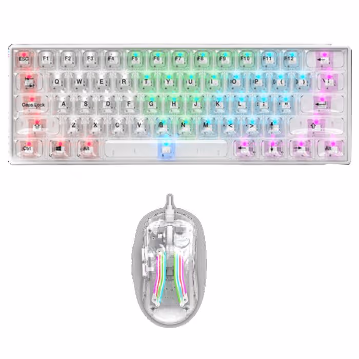 Pack Gamer Clavier Mécanique Filaire & Souris StarWave GCM1085 RGB Transparent est un ensemble performant et élégant conçu pour les gamers à la recherche de précision, de confort et d’un design moderne. Ce pack combine un clavier mécanique haut de gamme et une souris filaire ultra-précise, tous deux équipés d'un éclairage RGB personnalisable pour offrir une expérience immersive et visuellement attrayante.