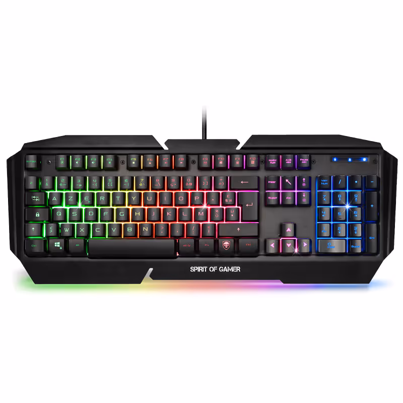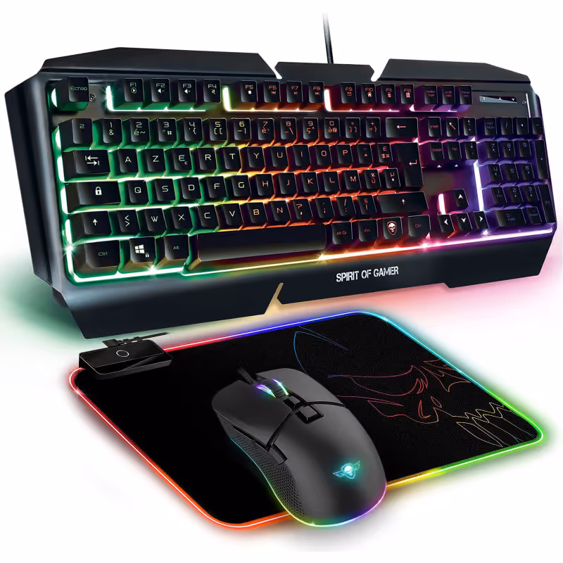 Le Pack Gamer 3 en 1 Spirit Of Gamer Ultimate MK500 RGB - Noir est la solution idéale pour les joueurs en quête de performance, de style et de confort. Ce pack complet comprend un clavier filaire AZERTY, une souris gaming haute précision et un tapis de souris design Skull Spirit, le tout agrémenté de rétro-éclairages RGB immersifs pour une ambiance de jeu saisissante.