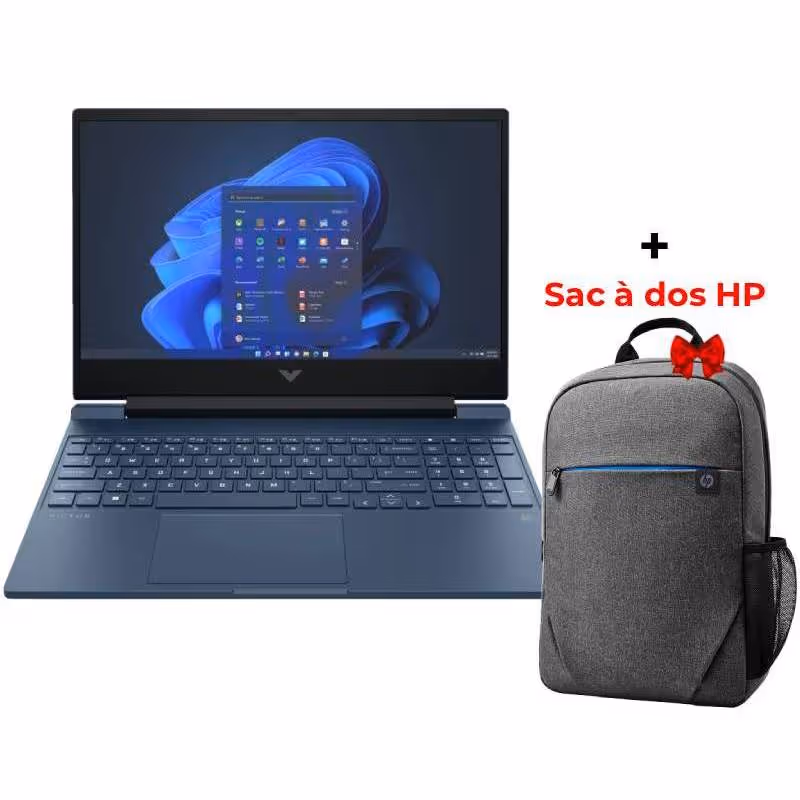 PC Gaming HP Victus 15-fa1006nk - Écran 15.6'' FULL HD, IPS - Processeur: Intel Core i5-13420H (Up to 4.60 GHz Turbo max, 12 Mo de mémoire cache, Octa-Core) - Système d'exploitation: Windows 11 Famille - Mémoire RAM: 16 Go DDR4 - Disque Dur: 512 Go SSD - Carte Graphique: NVIDIA GeForce RTX 2050 (4 Go de mémoire dédiée GDDR6) avec WiFi, Bluetooth, 2x USB Type-A, 1x USB Type-C, 1x HDMI 2.1, 1x RJ-45, 1x prise secteur Smart Pin, 1x prise combinée casque/microphone - Clavier rétroéclairé, de grande taille avec pavé numérique - Couleur: Bleu - Garantie: 1 an