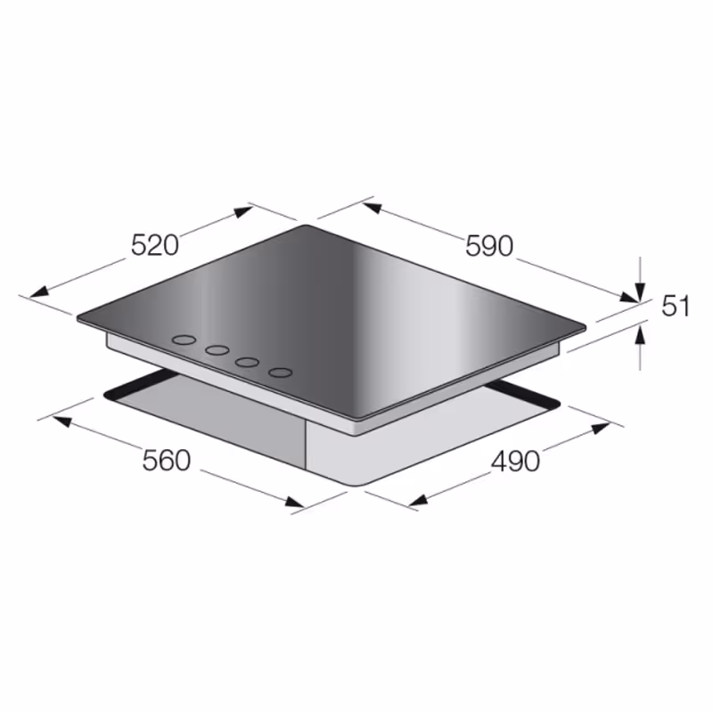 Dimensions extérieures : 59 cm (L) × 52 cm (P) × 5,1 cm (H) : format standard adapté à la plupart des plans de travail encastrés.
