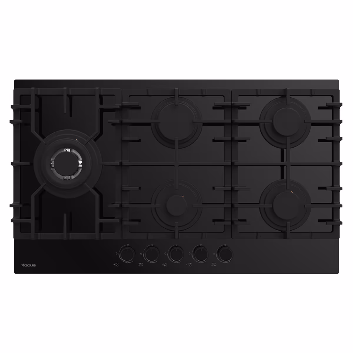 Plaque de cuisson encastrable de 90 cm en vitro noir, équipée de 5 brûleurs à gaz dont un brûleur triple couronne pour une puissance optimale. Elle dispose d’une flamme stabilisée, de grilles et chapeaux en fonte pour plus de robustesse, d’un allumage automatique et d’une sécurité thermocouple sur chaque brûleur, garantissant une utilisation sûre et efficace. Design élégant en noir, idéale pour les cuisines modernes.