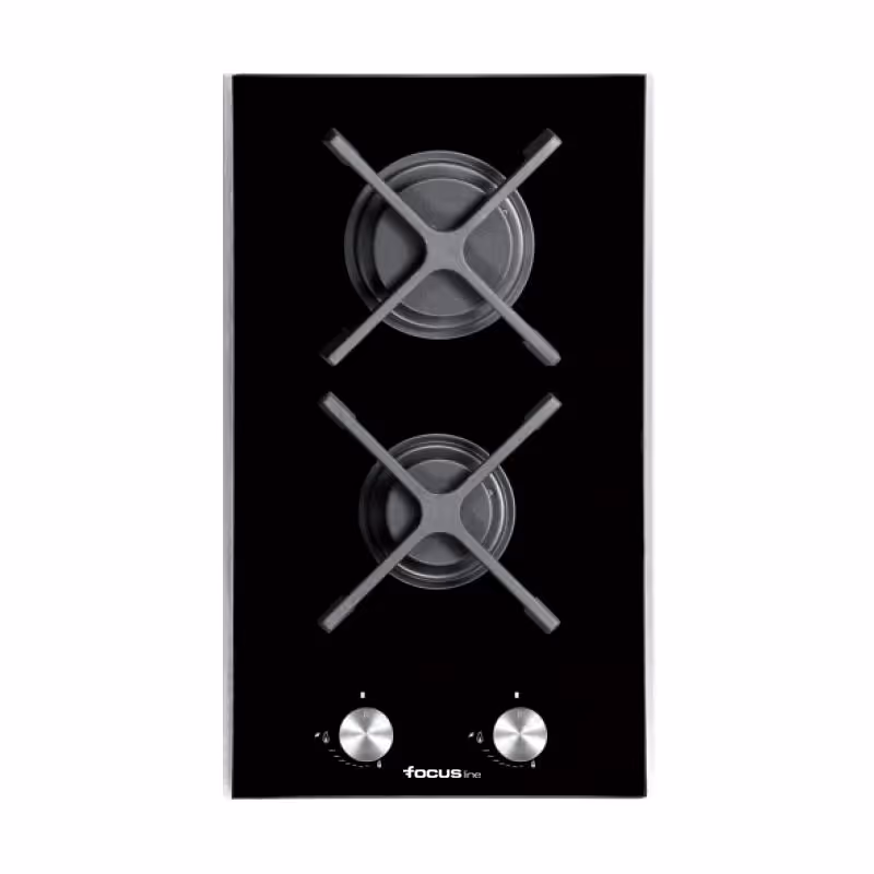 Plaque de Cuisson Encastrable FOCUS SOFT 32 – 2 Feux, 30 cm – Noir Compacte et pratique, cette plaque gaz encastrable de 30 cm dispose de 2 brûleurs (dont un triple couronne) avec flamme stabilisée pour une cuisson précise. Elle est équipée de grilles et chapeaux en fonte, d’un allumage automatique, de commandes frontales et d’une sécurité gaz sur chaque brûleur. Son design noir élégant avec profils aluminium s’intègre facilement dans toutes les cuisines modernes. Garantie 2 ans.