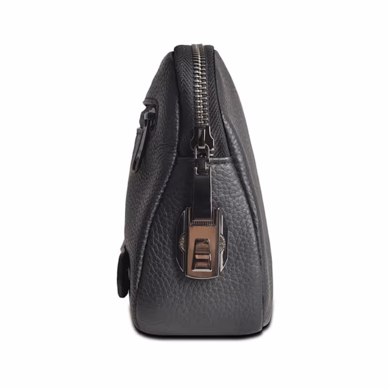Confectionnée en cuir de qualité, cette pochette est résistante aux rayures et facile à nettoyer, garantissant une excellente durabilité et un aspect soigné au fil du temps. Sa finition noire lui confère un style sobre et professionnel, idéal pour accompagner vos tenues formelles comme casual.