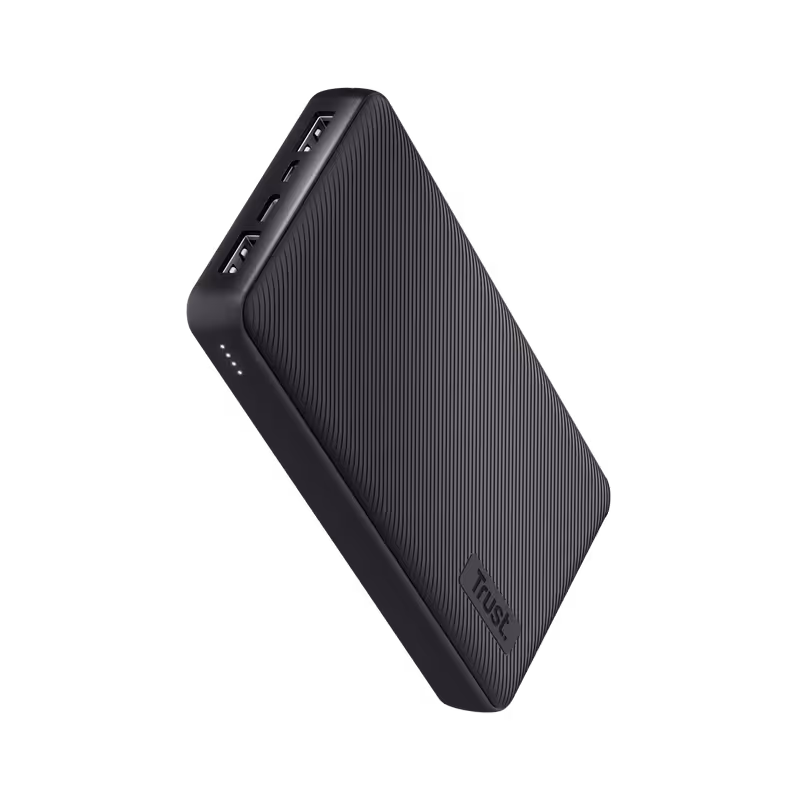 Le Trust Primo Eco dispose de deux ports USB-A et d'un port USB-C, vous permettant de charger plusieurs appareils en même temps. Il est également équipé d'entrées USB-C et micro-USB, ce qui permet de recharger la batterie de manière flexible avec différents câbles.