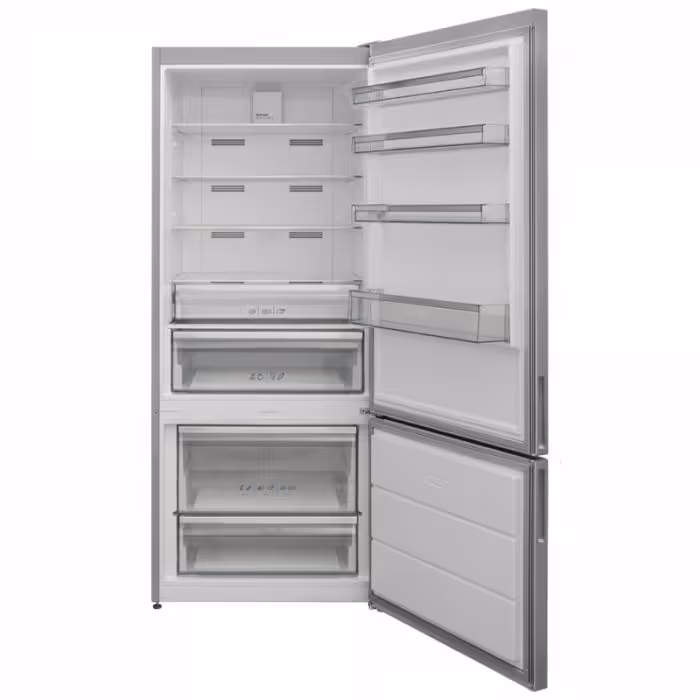 Le Réfrigérateur Combiné TELEFUNKEN FRIG-5531 560 Litres NoFrost - Inox est l’appareil idéal pour ceux qui recherchent un réfrigérateur spacieux, pratique et performant. Son système NoFrost, ses fonctionnalités avancées comme l'afficheur digital, l'alarme de porte et son bac à légumes avec contrôle d'humidité, en font un choix parfait pour une gestion optimale des aliments. Avec son design inox moderne et sa grande capacité, il s’adapte facilement à votre cuisine tout en vous garantissant une performance fiable sur le long terme.