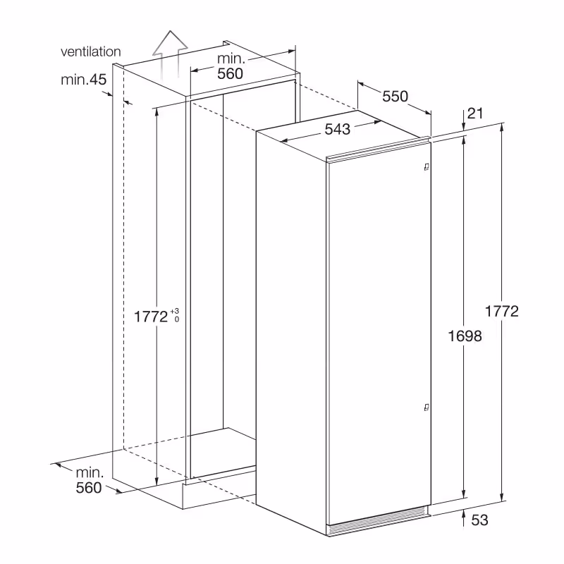 Réfrigérateur Encastrable FOCUS Filo 3000 (Réf. FILO-3000) est un appareil pratique et performant avec 1 porte et un système de refroidissement No-Frost, garantissant une conservation sans givre. Avec un volume brut de 315 litres et une classe énergétique A+, il offre amplement d’espace pour vos aliments. Il dispose de 5 clayettes en verre réglables, 5 bacs de rangement dans la porte, 2 bacs à légumes, ainsi que de portes réversibles pour une installation flexible. Son froid dynamique assure une température homogène et constante, tandis que ses dimensions de 177,2 x 55 x 54,3 cm en font un réfrigérateur intégré idéal pour toutes les cuisines. Il est couvert par une garantie de 2 ans.