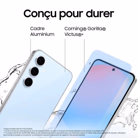 Le Samsung Galaxy S24 FE est un smartphone de la gamme Galaxy S de Samsung, positionné dans la catégorie des modèles haut de gamme, mais à un prix plus abordable que les versions Ultra ou standard de la série Galaxy S24. Il s'agit d'un appareil qui combine des caractéristiques premium tout en offrant un bon rapport qualité/prix. Voici une description détaillée de ses principales caractéristiques :