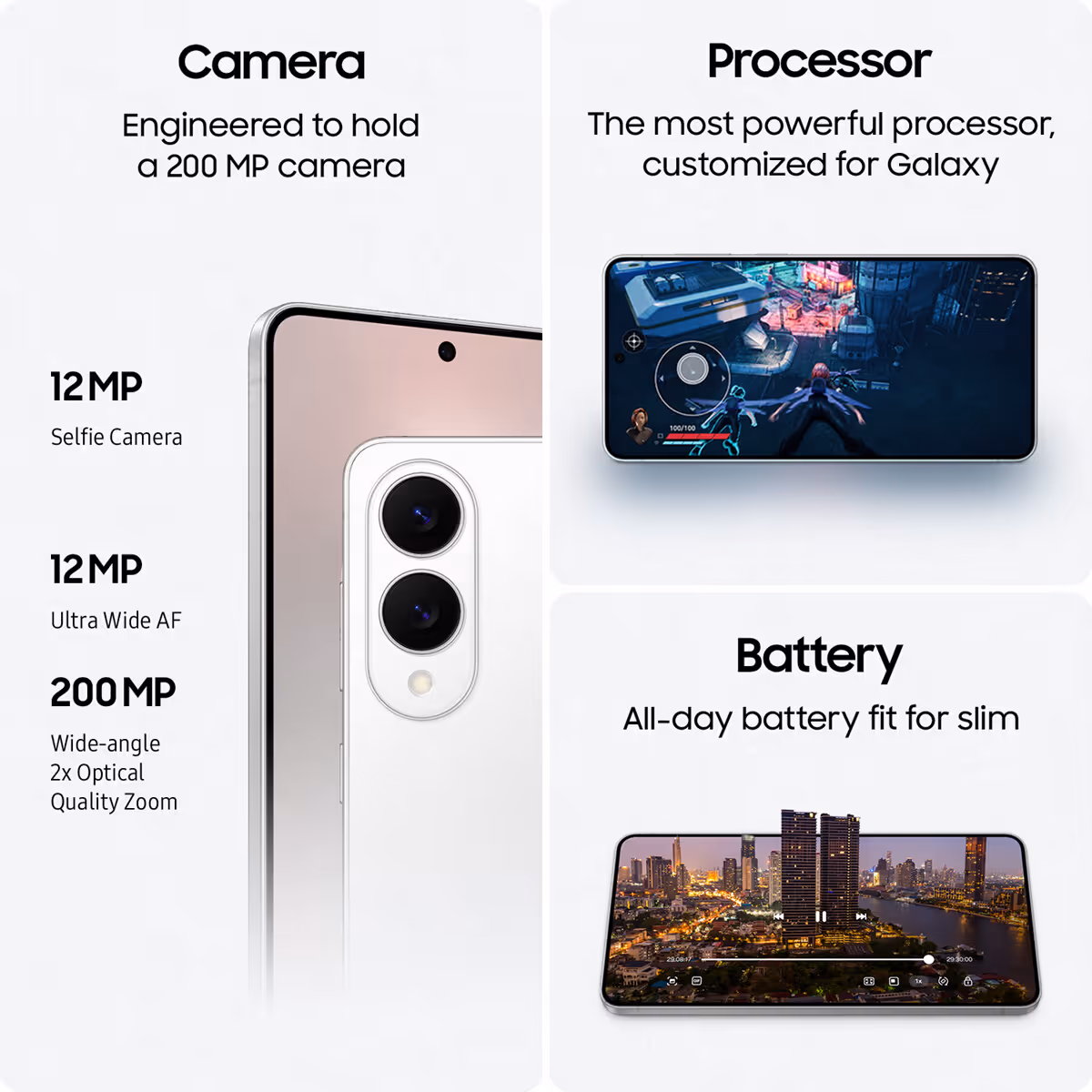 Propulsé par le Qualcomm Snapdragon 8 Elite (3 nm) et 12 Go de RAM, le S25 Edge assure des performances maximales en multitâche, gaming et création de contenu. Les 256 Go de stockage offrent un large espace pour applications, photos et vidéos.